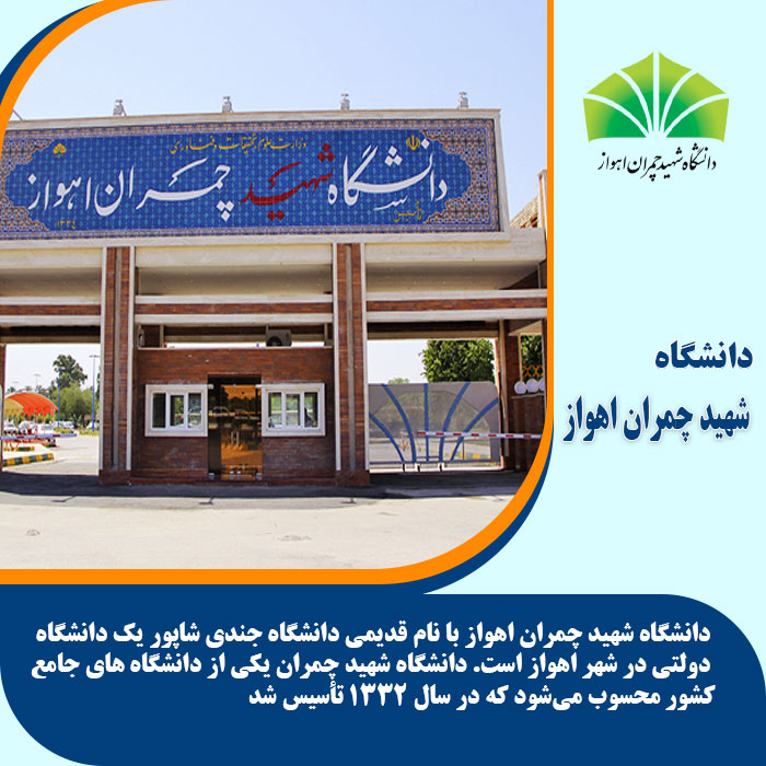 دانشگاه شهید چمران اهواز چهارمین دانشگاه بزرگ کشور و از بزرگ ترین دانشگاه های جنوب کشور است که در سال ۱۳۳۲ تاسیس شده است. هم اکنون دانشگاه شهید چمران دارای 17 دانشکده مصوب و ۱ پردیس صنعتی، با 69 گروه آموزشی می باشد که شامل 25 گروه علوم انسانی، 10 گروه علوم پایه،  12 گروه علوم فنی و مهندسی، 15 گروه علوم کشاورزی و دامپزشکی و 7 گروه هنرمی باشد. این گروه ها مجموعاً شامل 2 رشته در مقطع کارشناسی ناپیوسته، 53رشته در مقطع کارشناسی پیوسته، 221 رشته در مقطع کارشناسی ارشد، 131 رشته در مقطع دکتری تخصصی و 1 رشته در مقطع دکتری حرفه ای هستند. از این تعداد،  48 رشته در مقطع کارشناسی ارشد و 34 رشته در مقطع دکترای تخصصی مربوط به پردیس دانشگاهی و ۴ رشته در مقطع کارشناسی ارشد مربوط به دوره های الکترونیکی(مجازی) می باشد. درصد از 602 عضو هیات علمی دانشگاه دارای رتبه استادیاری و بالاتر می باشند و بیش از 5000 نفر دانشجوی تحصیلات تکمیلی در این دانشگاه مشغول به تحصیل هستند.