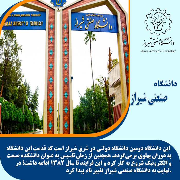 دانشگاه صنعتی شیراز بعنوان اولین دانشگاه صنعتی در منطقه جنوب کشور با رویکرد کلی تحصیلات تکمیلی و توجه ویژه به صنعت یکی از مراکز مهم آموزش علوم مهندسی در جنوب کشور محسوب می شود. این دانشگاه با قدمت بیش از چهل سال (شروع به کار بعنوان دانشکده صنعت الکترونیک در سال ۱۳۴۷) به تربیت نیروهای کارآمد و مورد نیاز جامعه صنعتی پرداخته است. امکانات آموزشی و پژوهشی بسیار مناسب و اساتید مجرب و کارآزموده علمی و صنعتی موجب گردید که این دانشکده درسال ۱۳۸۳ به دانشگاه صنعتی شیراز ارتقا یابد.